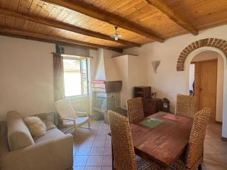 Vecchio fienile ristrutturato nel 2003 per uso privato abitazione. Casa singola su due livelli. Piano terra adibito a zona giorno con cucina e camino. Primo piano zone notte con camera da letto, bagno e ripostiglio. Soffitto/Tetto Legno a vista.