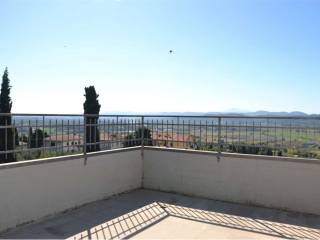 Lucignano immediata periferia vendesi appartamento di recente costruzione molto panoramico con vista sulla Val di Chiana e sulle mura del centro storico, composto da giardino con scala esterna per accedere all'appartamento posto al p.1 dove si trova ballatoio, ingresso soggiorno, pranzo con angolo cottura, disimpegno, bagno, ripostiglio e camera matrimoniale con terrazzo.
