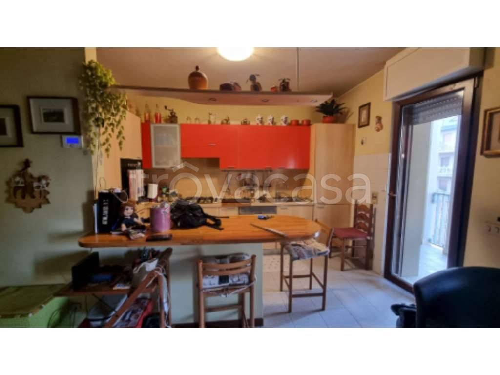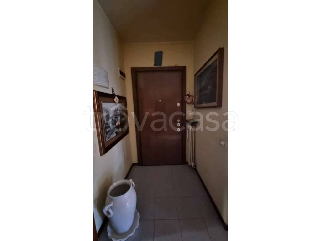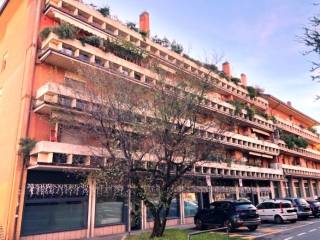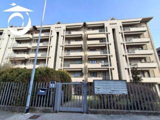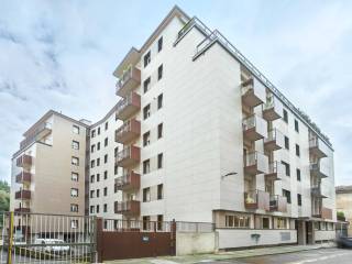 Appartamento trilocale al piano quarto con ascensore, composto da ingresso, cucina aperta, soggiorno, disimpegno, ripostiglio, due camere, un bagno e due balconi, con annessa cantina al piano terra e box singolo ubicato in corpo esterno al piano terra.