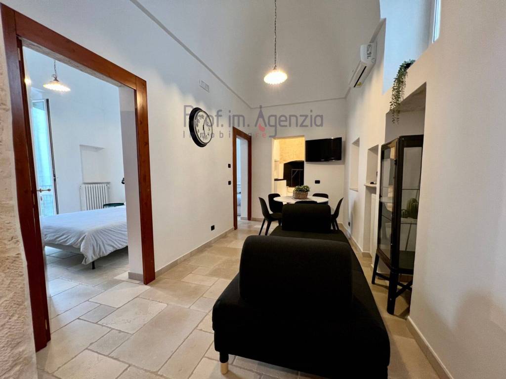 Vendesi interessante palazzo storico di inizio 700, a pochi passi dalla piazza principale di Ostuni la “Città Bianca”. L’immobile ha come caratteristica delle meravigliose volte a padiglione, è in vendita arredato ed è composto da soggiorno, cucina con camino, due camere da letto, di cui una con balcone e bagno, e un ulteriore bagno di servizio; tramite scala interna si accede al piano superiore dove vi è un terrazzo, di proprietà esclusiva, da dove è possibile godere di una meravigliosa vista panoramica sul mare. Grazie alla sua posizione centralissima, l’immobile si presta a diventare una soluzione ideale da mettere a reddito come casa vacanza o b&b, vista la popolarità della città di Ostuni come meta turistica, nonché come abitazione privata per chi cerca una dimora storica in un contesto ben servito e abitato.