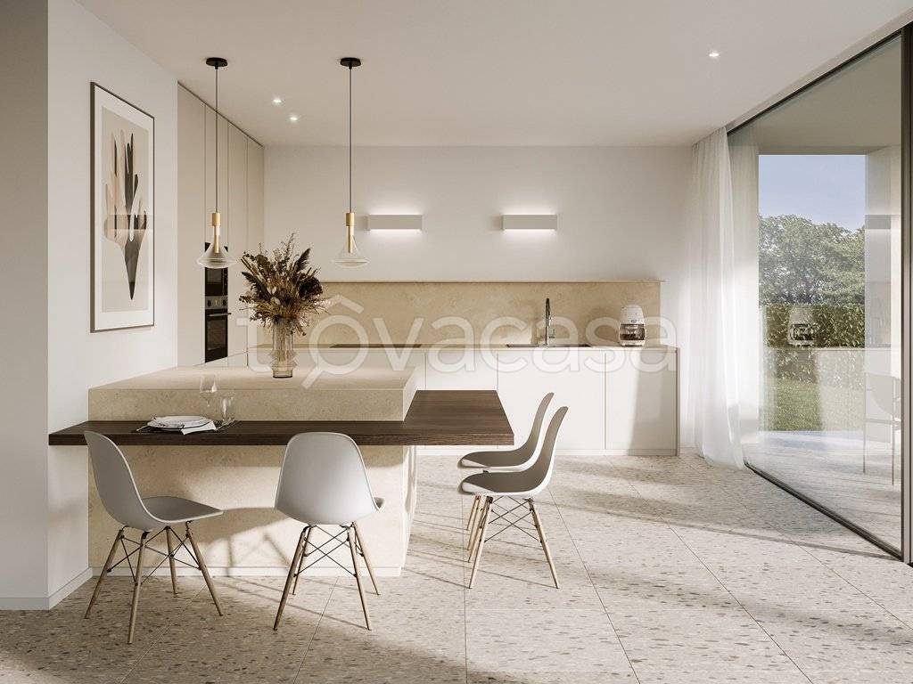Tramite scala interna si accede a piano terreno dove troviamo un grande soggiorno open space con portico coperto di mq 70, una cucina a vista e un bagno;