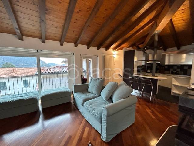 Cernobbio Fraz. Piazza Santo Stefano nel centro storico, ben servito, in piccola palazzina di sole 4 Unita' ristrutturata a nuovo nel 2009,vendesi splendido appartamento arredato e rifinito con qualita', con travi a vista, vista lago e composto da ingresso, ampio salotto con vetrata e camino, due camere, due bagni, soppalco a vista/studio, ripostiglio. Termoautonomo.