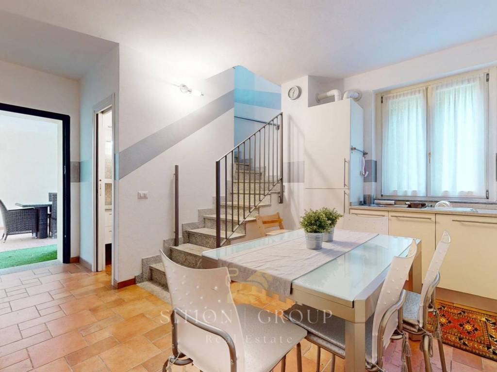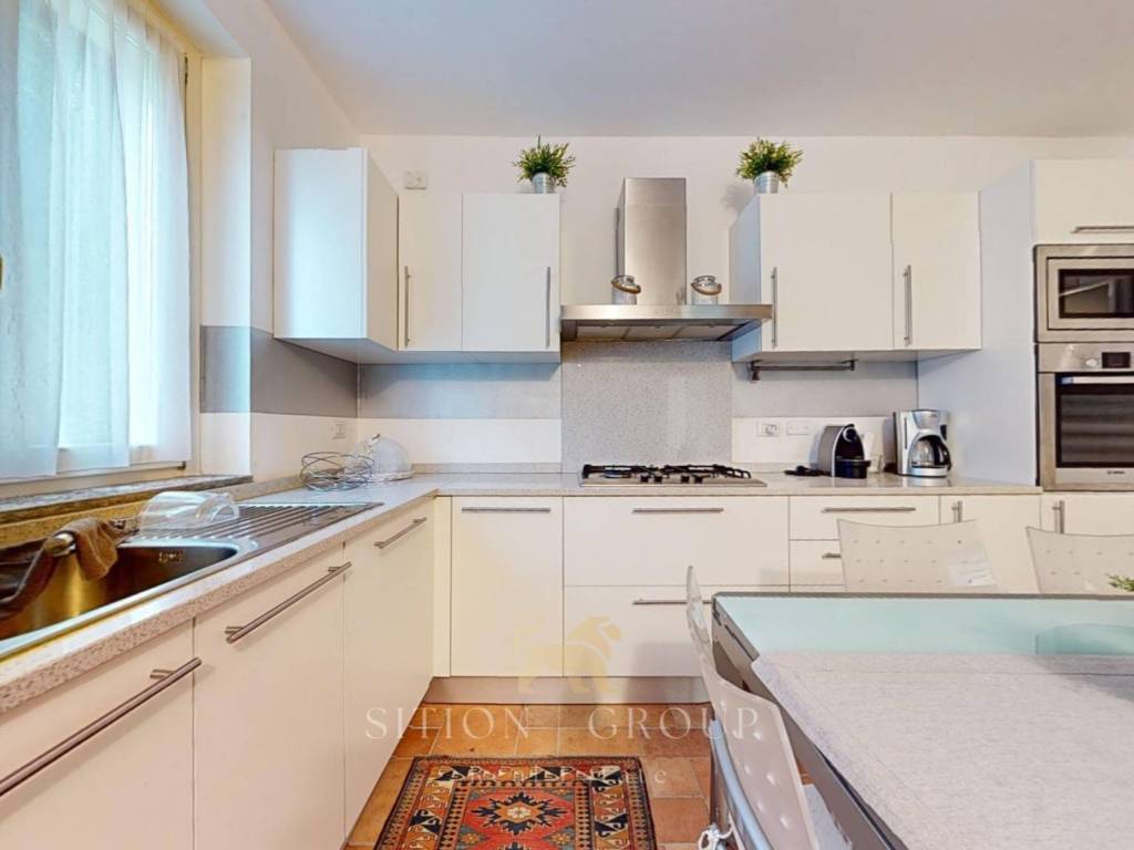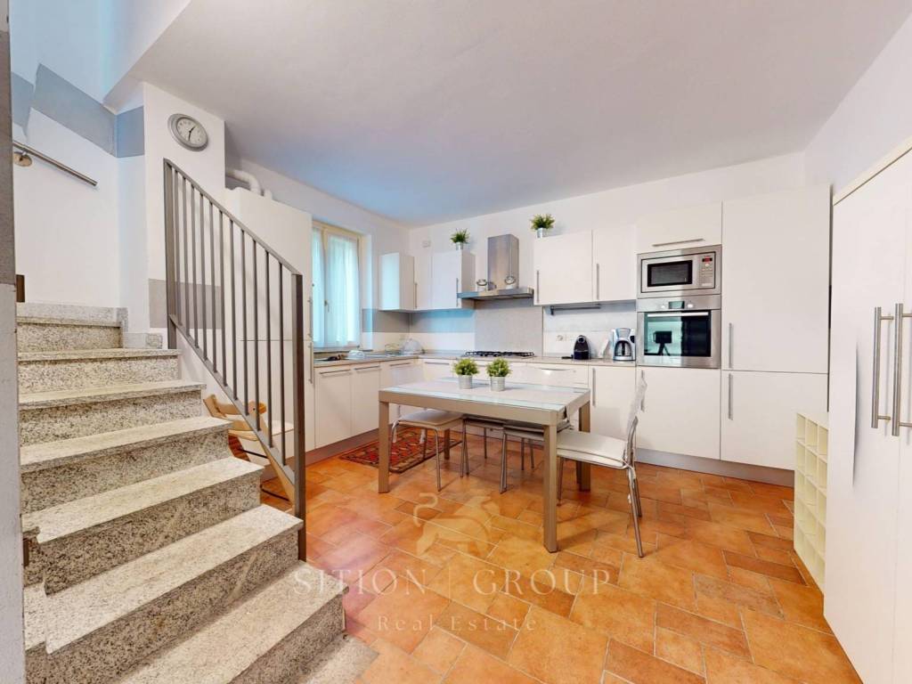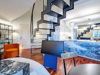 Dal piano terra, si accede alla cucina a vista moderna e completamente attrezzata con elettrodomestici di alta qualità. È stata progettata su misura dagli artigiani di Habitare per soddisfare le esigenze di chi ama cucinare, offrendo spazio sufficiente per preparare deliziose pietanze. Salendo, si accede alla luminosa zona living, arredata con stile ed attenzione ai dettagli. Il soggiorno è dotato di un diretto accesso alla terrazza, un accogliente spazio esterno dove è possibile godere di momenti di relax all'aria aperta e ammirare la vista. Successivamente, all’ultimo piano si sviluppa la zona notte, composta da due camere da letto, una matrimoniale e una singola. Le camere sono spaziose, con ampie finestre che permettono l'ingresso di luce naturale, creando un'atmosfera accogliente. In aggiunta, l'appartamento dispone di due bagni, ognuno dotato di servizi moderni e finiture di alta qualità.