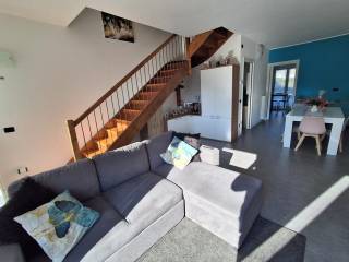La soluzione si completa di ampi locali cantina al piano terra e di un ampio prato, in parte cintato.