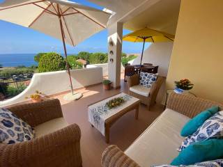 Disponiamo di villa a schiera con vista mare, arredata con gusto e massima cura nei particolari, su due livelli con ingresso indipendente composta da: soggiorno con balcone, angolo cottura, servizi, al secondo livello: camera matrimoniale con ventilatore a pale al soffitto, cameretta con balcone e servizi.