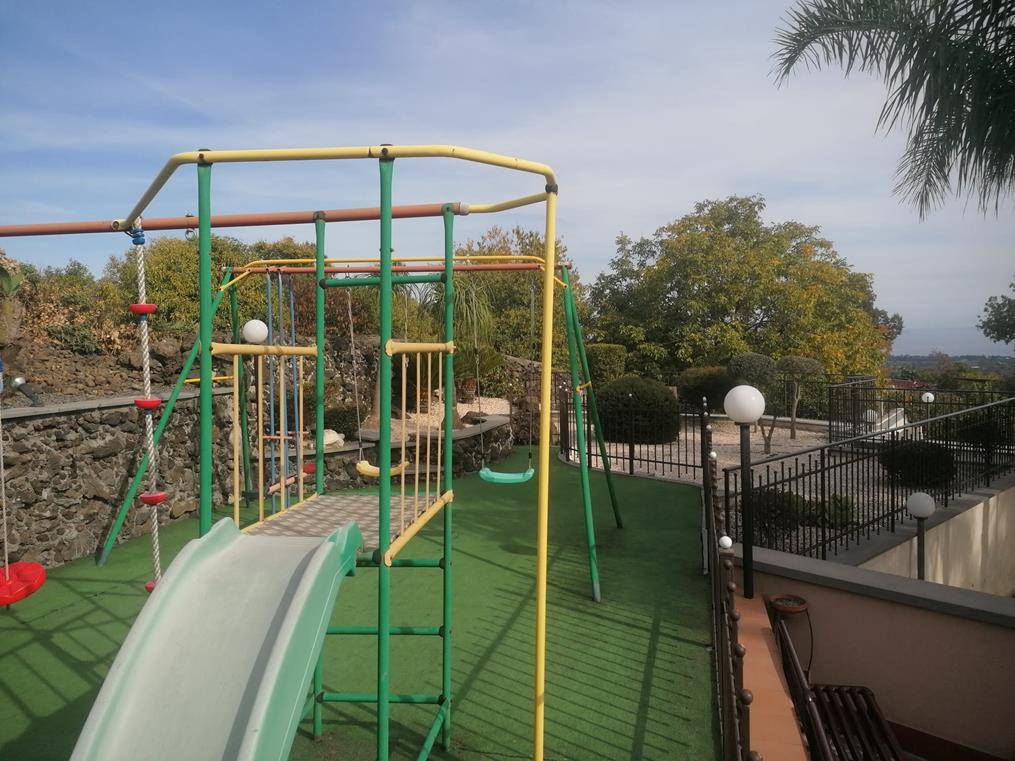La villa, con ampio ingresso privato, curata in ogni dettaglio come si evince dalle medesime foto, dalle ottime condizioni in quanto finemente ristrutturata, si sviluppa tutta su un unico livello, piano terra e si presenta molto luminosa e soleggiata in quanto libera ai quattro lati; quest’ultima, al suo interno si suddivide in: ingresso su soggiorno/cucina unico ampio ambiente dotata di stufa a pellet, camera da letto matrimoniale e rifinito bagno con doccia dalle moderne rifiniture; all’esterno, adiacente la cucina troviamo un ulteriore ampio vano di mq 40 verandato da adibire a zona relax o a qualsivoglia utilizzo, il tutto con affaccio all’ampia corte esterna ove mediante delle scale esterne accediamo ad una zona adibita a gioco per i bambini ed un ampio terreno dotato di impianto di illuminazione e sistema di irrigazione automatico, perfettamente curato in ogni dettaglio, ricco di piante ornamentali, alberi ad alto fusto, agrumi, alberi di frutto ecc.. ed inoltre un ampio spazio verde adibito a zona relax/solarium , luogo perfetto per potersi rilassare in totale privacy, godendo non solo dell’abitazione interna ma altresì dell’esterno con la sua natura lussureggiante dal bellissimo panorama che ci riserva su tutta la nostra costa ionica da un lato e l’etna dall’altro. Adiacente la villa troviamo un utile ripostiglio, lavanderia, piccolo deposito ed inoltre una zona forno con annessa cucina.