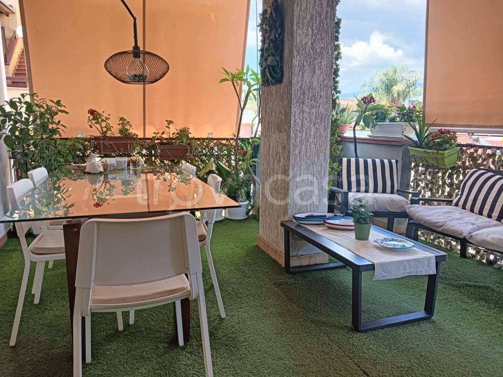 • Ampio soggiorno con cucina a vista e accesso a un terrazzo vivibile fronte Etna – perfetto per rilassarsi o cenare all’aperto