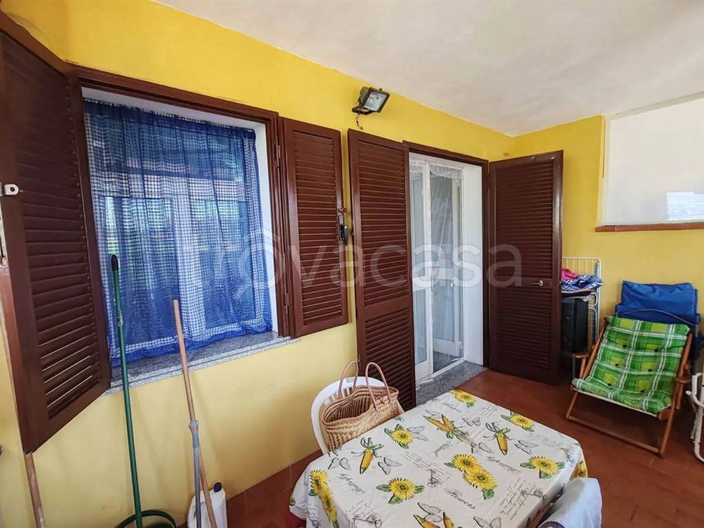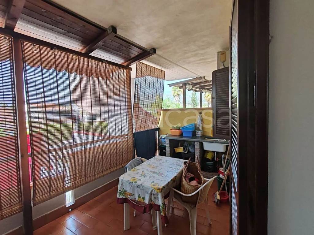 L'appartamento è così composto: ampia veranda coperta dalla quale si accede ad una comoda ed abitabile cucina con tre posti letto, camera da letto balconata e bagno,