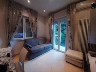 Cesenatico: vicino al quartiere Madonnina in Via Selene, recente palazzina con formula residence (ogni appartamento ha il suo ingresso indipendente), grazioso appartamento arredato al piano primo composta da: ingresso, antibagno, bagno, soggiorno con angolo cottura e balcone; collegato da scala altro bagno, ampio disimpegno (2°camera) e camera da letto matrimoniale.