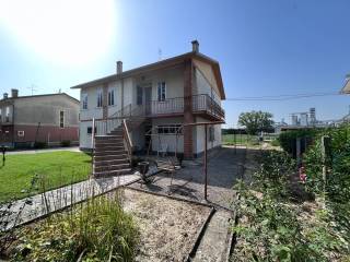 Riva del Po (Fe) loc. Ro, in posizione appartata e tranquilla, bella casa indipendente, disposta su due livelli con ingresso in soggiorno/pranzo con caminetto, cucina abitabile, bagno, dispensa, ripostiglio, veranda, e ampio garage al piano terra; una letto matrimoniale , due singole, bagno e terrazzo con scala esterna al primo piano. Ampio scoperto di proprietà con posto auto coperto. Classe energetica in fase di determinazione. Richiesta € 250.000 trattabili. Cod.18