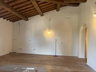 La proprietà vanta dettagli architettonici di pregio che esaltano l’autenticità toscana: pavimenti in cotto originale con inserti in pietra serena, pareti esterne in pietra e mattoni facciavista, soffitti con travi a vista e mezzane in cotto, elementi che conferiscono calore e raffinatezza a ogni ambiente.