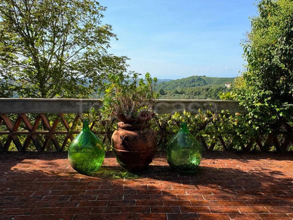 Salendo la prima scala si accede a un intimo salottino, che funge da disimpegno per due grandi camere matrimoniali e un bagno di particolare fascino, dotato di vasca e scrittoio.Il piano superiore, accessibile attraverso una raffinata scala in vetro fumé e ferro battuto, conduce alla camera più suggestiva della residenza: la suite ricavata nella storica piccionaia, con tre finestre che incorniciano scorci spettacolari della vallata circostante.