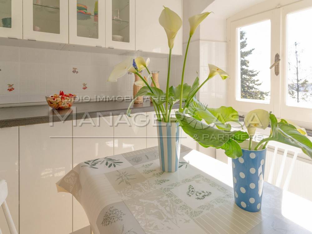 Zona Crevari alta in Via Luigi Gainotti, uscita autostrada ge-voltri Pra, immerso nel verde, con vista mare, appartamento posto all'ultimo piano della villa, con giardino con accesso da cancello elettrico privato. Posto auto all'interno del giardino privato.