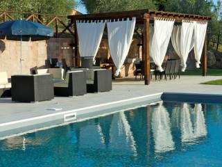 380 mq lordi con 4 camere da letto e 6 bagni. Terreno di 2 ettari con orto, olivi e boschetto. Piscina.