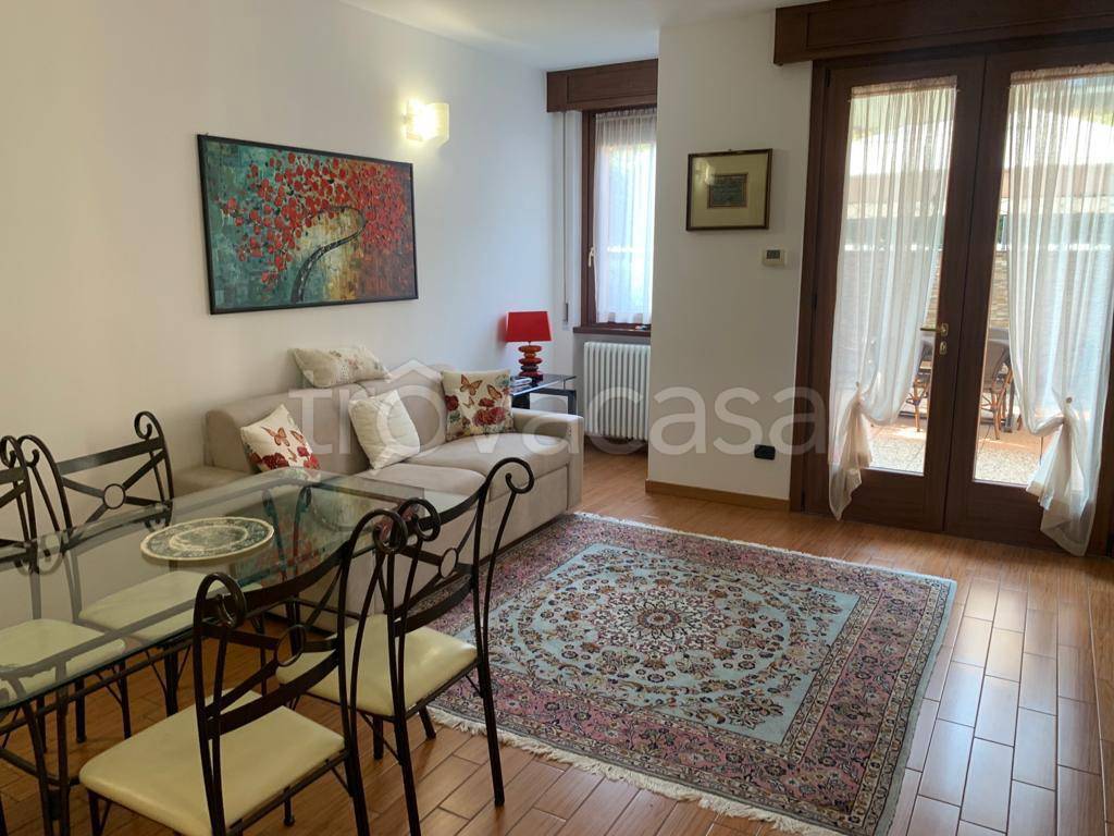 È completamente arredato e la cucina è dotata di elettrodomestici ivi inclusa la lavatrice. Le finiture sono ottime e gli infissi sono nuovi in pvc con doppi vetri. Il contesto condominiale offre anche una piscina riscaldata e un'area attrezzata con lettini che permette di godere a pieno del tempo libero nelle giornate di sole ,senza dover andare al lago nelle giornate più calde.