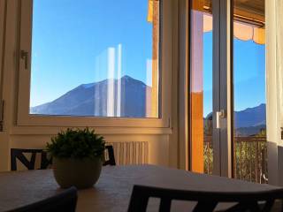 Disposta su due livelli, la casa accoglie al piano terra un ampio e luminoso soggiorno con angolo cottura, impreziosito da una grande vetrata che apre la vista sul Lago di Como, regalando un'atmosfera di relax e continuità tra interno ed esterno. Sullo stesso livello si trova un bagno finestrato, elegante e funzionale.