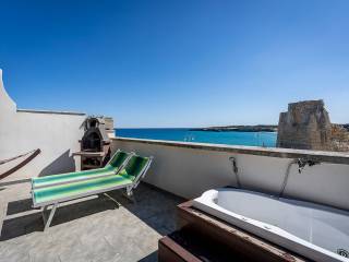 Proponiamo in vendita, nella splendida e tanto ambita marina di Melendugno, Torre dell’Orso, luminosa e accogliente villetta indipendente, vista mare, situata sul lungomare Matteotti, di fronte alla famosa baia d’Oriente. La soluzione è composta da: doppio ingresso, soggiorno open space, cucina abitabile con angolo cottura in muratura, due camere da letto, bagno con box doccia, scoperto antistante, in parte piantumato, scoperto retrostante adibito a zona relax con vano lavanderia, ulteriore vano indipendente, composto da camera da letto e bagno, e scala a vista per accedere alla terrazza attrezzata di solarium e angolo barbecue. Il secondo ingresso, situato lateralmente all’edificio, offre la possibilità di tre posti auto scoperti comodi e l’accesso diretto al monolocale. L’immobile è provvisto di climatizzatori e tutti i comfort necessari a garantire un benessere abitativo durante il periodo estivo. Se ne consiglia la visione.