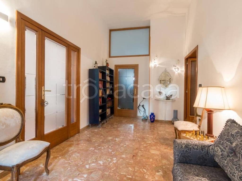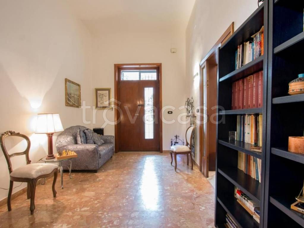 Villa in zona residenziale a 15 minuti a piedi da Porta Rudiae con tre ingressi. Consta di un'ampia reception, ampio salone con caminetto e climatizzatore, due camere da letto (di cui una climatizzata e con infissi nuovi), 2 bagni con docce, ampio living con caminetto e climatizzatore, cucina abitabile e arredata con mobili artigianali su misura, lavanderia. Nel garage con accesso sulla cucina, 2 vani tecnici, terzo bagnetto/lavanderia esterna, scale con accesso alla marsarda con bagno e cucina. Due giardini: uno frontale con piante ornamentali, uno dietro con alberi da frutto. Cancello automatico con passo carrabile e due posti auto. Rifiniture di pregio: marmi a terra, copri termosifoni in ferro battuto, caminetti con marmi, cassaforte. Ideale per attività di b&b o per ricavare 3 appartamenti.