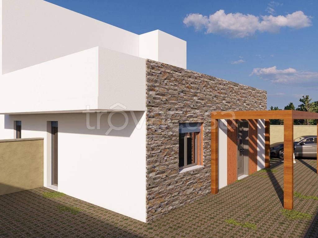 Villetta duplex da costruire disposta su due livelli e composta al piano terra da: soggiorno-pranzo con angolo cottura, antibagno, bagno, oltre a giardino di pertinenza esclusiva su tre lati con veranda.