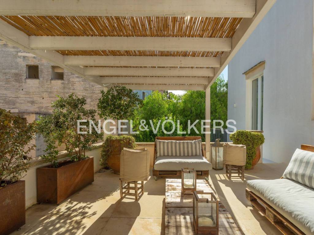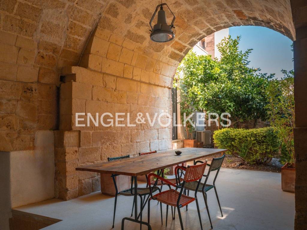 Una proprietà dal forte carattere con elementi di grande originalità. Una dimora privata a due passi da Porta San Biagio, dentro le mura della città. Spazi ampi, il giardino gradevole e ben piantumato che unisce le due unità, tre terrazzi e un ambiente esterno coperto abbracciato da archi in pietra sono alcuni degli elementi che risaltano e che caratterizzano questa proprietà finemente restaurata, garantendo comfort e privacy pur trovandosi nel centro storico della città di Lecce.