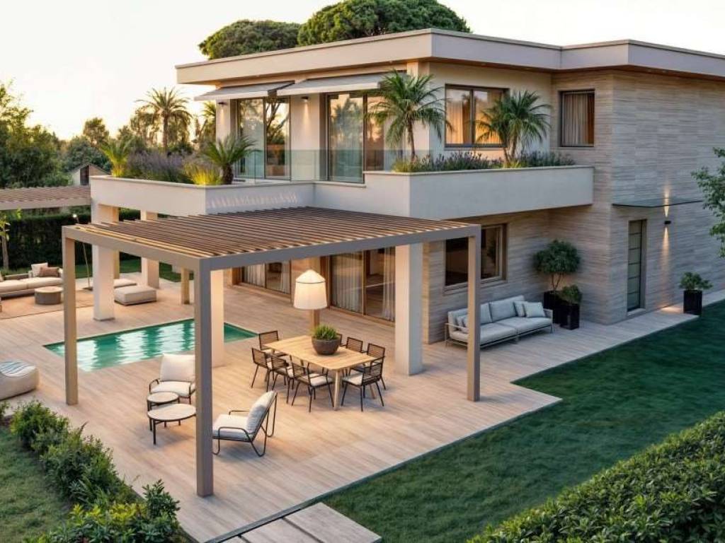 Villa di nuova costruzione di circa 270 mq fuori terra su lotto di oltre 1000 mq con piscina di 18 mq. A circa 1 km dal mare in posizione super centrale sorgerà una villa moderna dotata di ogni comfort con un giardino riservato, ideale per essere vissuta nella stagione estiva, ma anche negli altri mesi dell’anno. Al piano terra: ingresso, soggiorno e zona pranzo affacciati sul verde e sulla piscina, cucina abitabile, camera matrimoniale con bagno in suite, bagno ospiti, lavanderia. Al primo piano: 4 camere matrimoniali con bagno in suite, ognuna con terrazza o balcone (possibilità di master bedroom con cabina armadio e doppio bagno). Ai lati della piscina, zona pranzo e zona relax impreziosite dalla presenza di due pergole con lamelle orientabili che permetteranno di vivere al meglio in ogni ora della giornata il giardino.