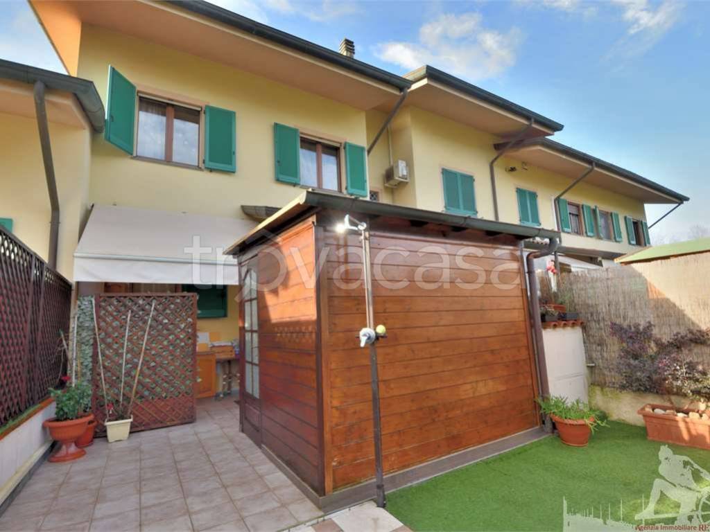 Villetta in schiera distribuita su due piani fuori terra oltre al sottotetto in parte fruibile. Abitazione di circa 100 mq, distanza dal mare circa 1.200 metri. Al piano terra: soggiorno pranzo, cucina, bagno, ripostiglio. Al piano primo: camera matrimoniale con balcone, camera singola, cameretta/studio, disimpegno. Con piccola corte sul fronte e sul retro. Possibilità di parcheggio agevole. Viene venduto arredato.