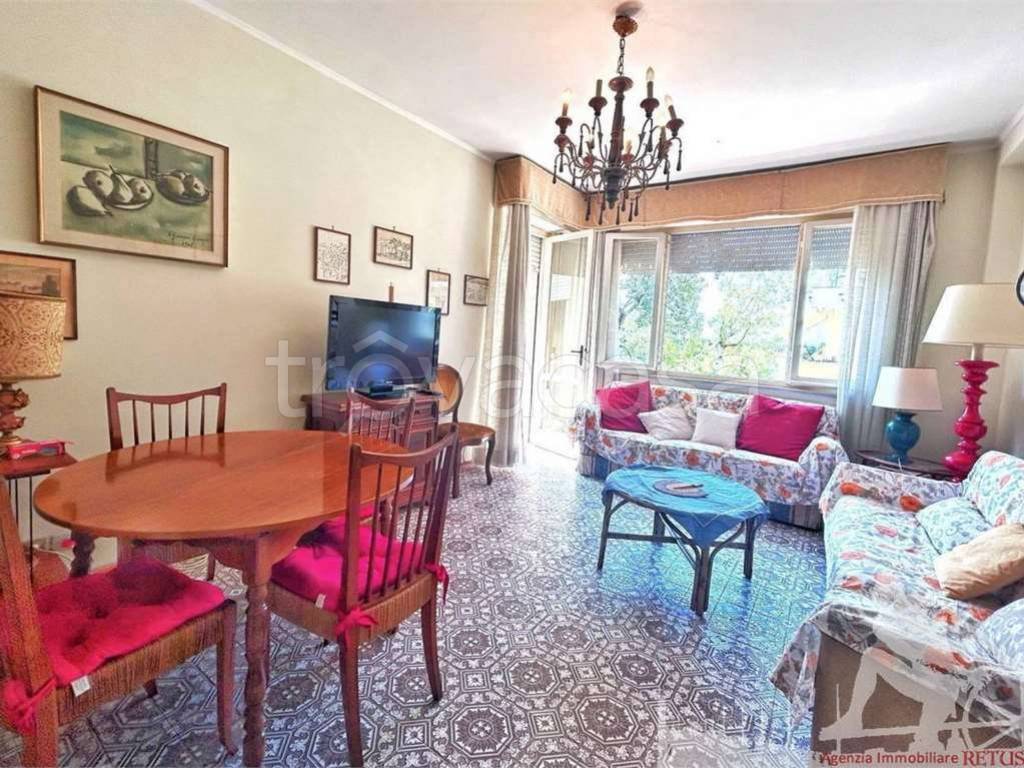 Appartamento al piano terzo con ascensore di bel condominio immerso nel verde di un parco privato, con posto auto e box privato. Abitazione di circa 95 mq, distanza dal mare circa 1.300 metri. Composto da: da ingresso, soggiorno con terrazza, cucina abitabile con veranda, bagno, ripostiglio, due ampie camere da letto matrimoniali.