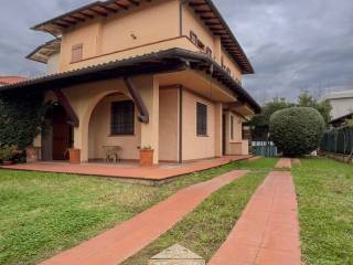 Forte dei Marmi, tra Vittoria Apuana ed il centro , in bella zona ad 800 mt dal mare , vendesi villa singola di 200 mq a piani sfalsati , insistente in un lotto di 500 mq : piano terra rialzato con soggiorno e cucina abitabile con camino più verande, si scende qualche gradino e troviamo un bagno, vano ad uso garage ed una camera singola, mentre al piano superiore ci sono due camere matrimoniali, una camera singola ed un bagno più balconi ( questa parte è collegata ad uno studio di ben 45 mq ) , dependance ad uso lavanderia e ripostiglio ; la richiesta è di 1,1 mln di Euro trattabili .