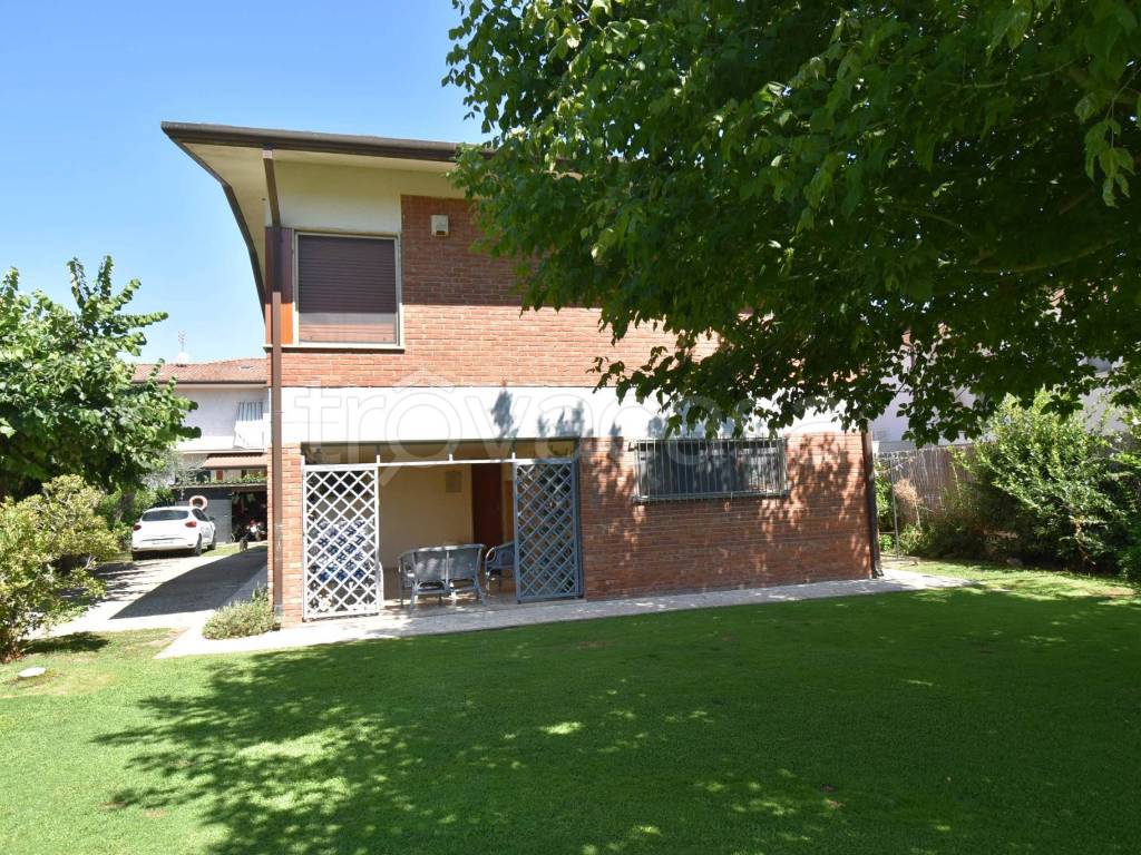 Villa singola corredata da giardino su 4 lati e posto auto interno, composta al piano terra da ingresso, zona lavanderia e bagnetto di servizio; al piano primo rialzato composta da sala e cucina con veranda esterna; al piano primo composta da 2 camere matrimoniali, cameretta, bagno e altro vano ad uso studio. Al piano seminterrato con ingresso indipendente ampia cantina con wc. Abitabile subito. L'immobile risulta da rivedere.