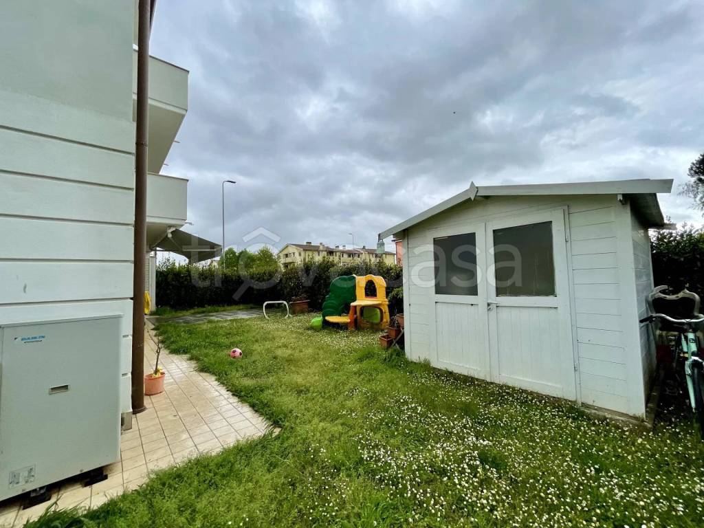 A corredo abbiamo un bellissimo giardino angola di oltre 160 mq con accesso pedonale anche direttamente dalla strada, veranda di oltre 20 mq coperta con possibilità di cenare e pranzare comodamente anche all'esterno, due posti auto nell'area privata del condominio.