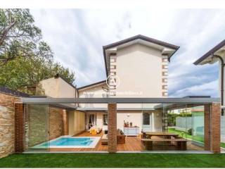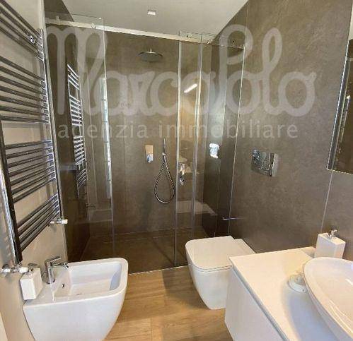 L'unita in oggetto e dotata di finiture di lusso e di tutti i comfort al pari di una villa di prestigio. Il riscaldamento e autonomo a gas a pavimento, l'aria condizionata e canalizzata,dotata di impianto a pannelli solari per la produzione di acqua calda sanitaria e fotovoltaico per l'energia elettrica. I pavimenti esterni sono in lastre di pregiato travertino di grande formato e quelli interni in listoni di rovere naturale. I rivestimenti dei bagni sono in lamina, la casa e arredata con gusto e con armadi su misura. Ogni ambiente e dotato di porte finestre che donano all'appartamento molta luminosita e sono dotate di alto isolamento termico ed acustico, oltre che da zanzariere a scomparsa.