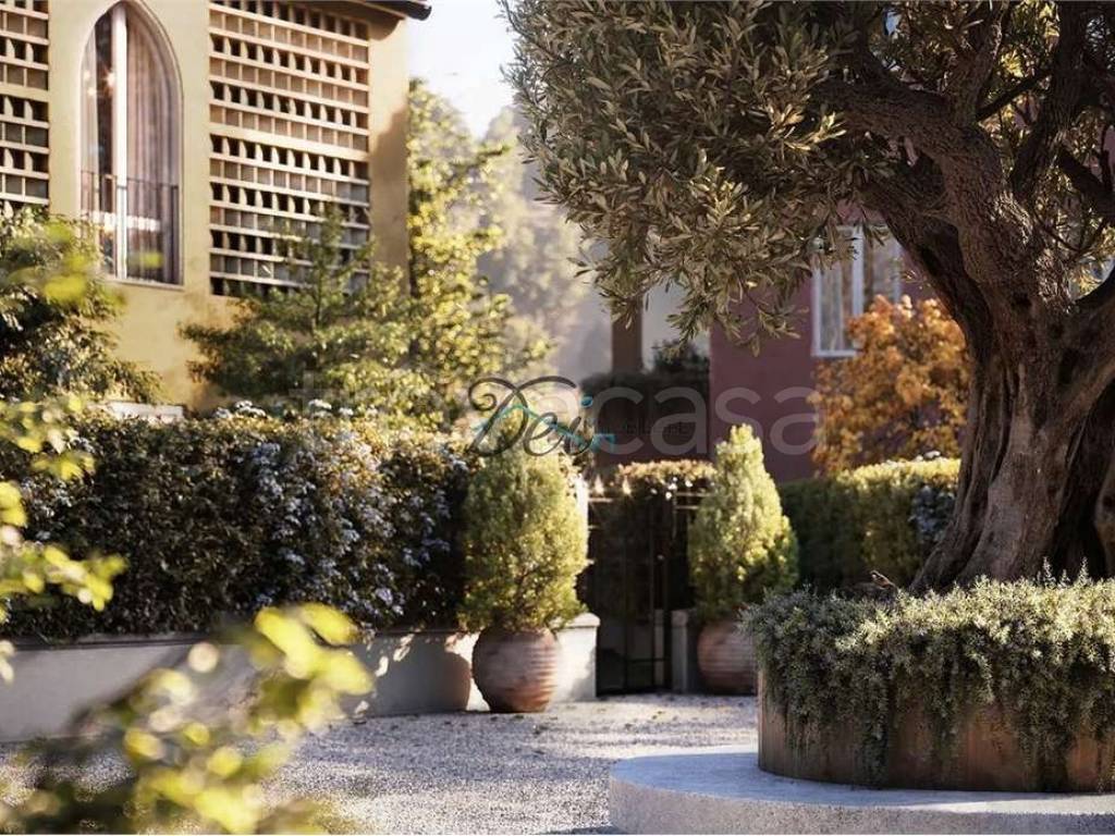 La proprietà è corredata da giardino di 80 mq, piscina condominiale, terreno discosto di 150 mq e due posti auto privati.
