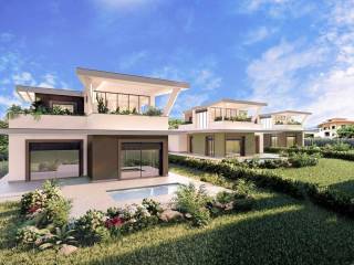 La villa è disposta su due livelli fuori terra più la soffitta con un'altezza di 2,20 m nel punto più alto e il piano seminterrato dove ci sono il garage ed altri spazi utili per il rimessaggio ed altri utilizzi.