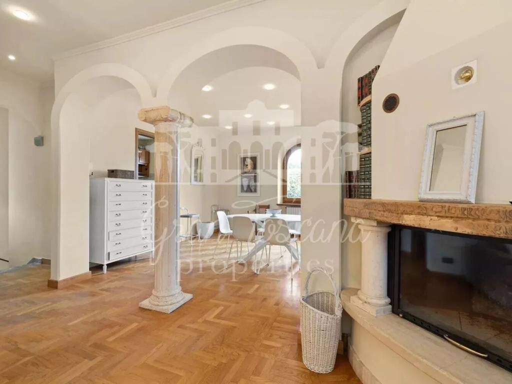 Salendo si entra nell'ampio soggiorno con accesso alla lunga terrazza coperta. La cucina è molto ampia e dotata di finestra.