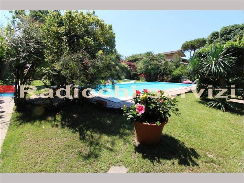 Rif F247 Forte dei Marmi, splendida Villa con piscina circondata da ampio e soleggiato giardino dotato di accesso carrabile e posti auto interni. La Villa, di grandi dimensioni e sviluppata su due piani oltre a piano seminterrato, si compone internamente nel seguente modo: Piano Terra: ingresso – ampia zona giorno aperta sul giardino e sulla piscina – cucina - sala da pranzo con accesso alla veranda esterna - bagno Piano Mezzanino: Grande camera matrimoniale con bagno privato; Piano Primo: 2 camere con bagno, bellissimo soppalco con vista sul soggiorno Piano Seminterrato: ampia taverna con camino – camera – bagno – lavanderia.