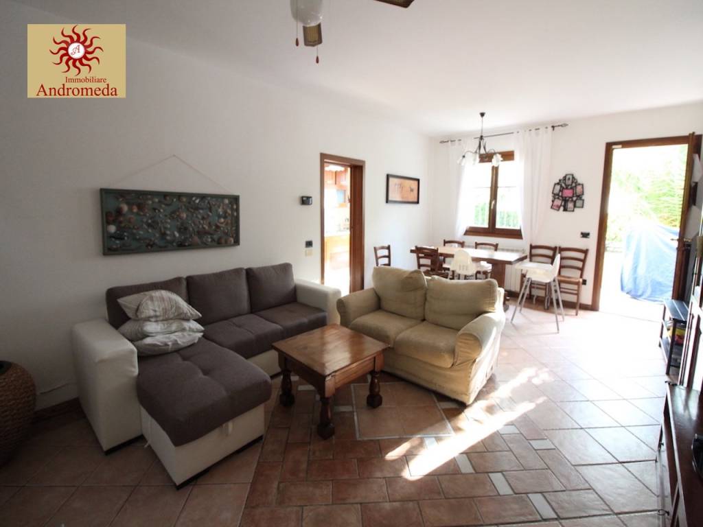 Circondata da circa 400mq di giardino, dotato di accesso carrabile e posti auto interni, la villetta, si compone internamente nel seguente modo: