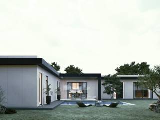 La prima unità abitativa si sviluppa nella seguente maniera: al piano rialzato troviamo ingresso, disimpegno con salottino ed un bagno di servizio, ampio e luminoso soggiorno con cucina a vista e camino. Ampie vetrate donano luce a questa zona attraverso si accede all'ampio porticato per piacevoli pranzi e cene en plein air.