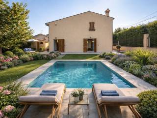 La villa è dotata di un ampio e curato giardino, di grande piscina con zona prendisole, pergola per pranzo a cene a bordo piscina, zona forno a legna e barbecue.