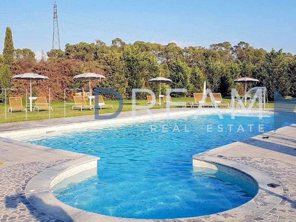 Circondato da un terreno di circa 30.000 mq, il complesso è dotato di un grande parco perfettamente curato, ideale per creare spazi dedicati al relax o per attività all'aperto. La proprietà include una piscina con vano motori interrato, una vasta area verde con possibilità di realizzare un maneggio, piantare alberi da frutto o ulivi, e trasformare il complesso in un'attività agrituristica. L’ampia resede è sistemata con camminamenti e include una zona parcheggio dedicata.