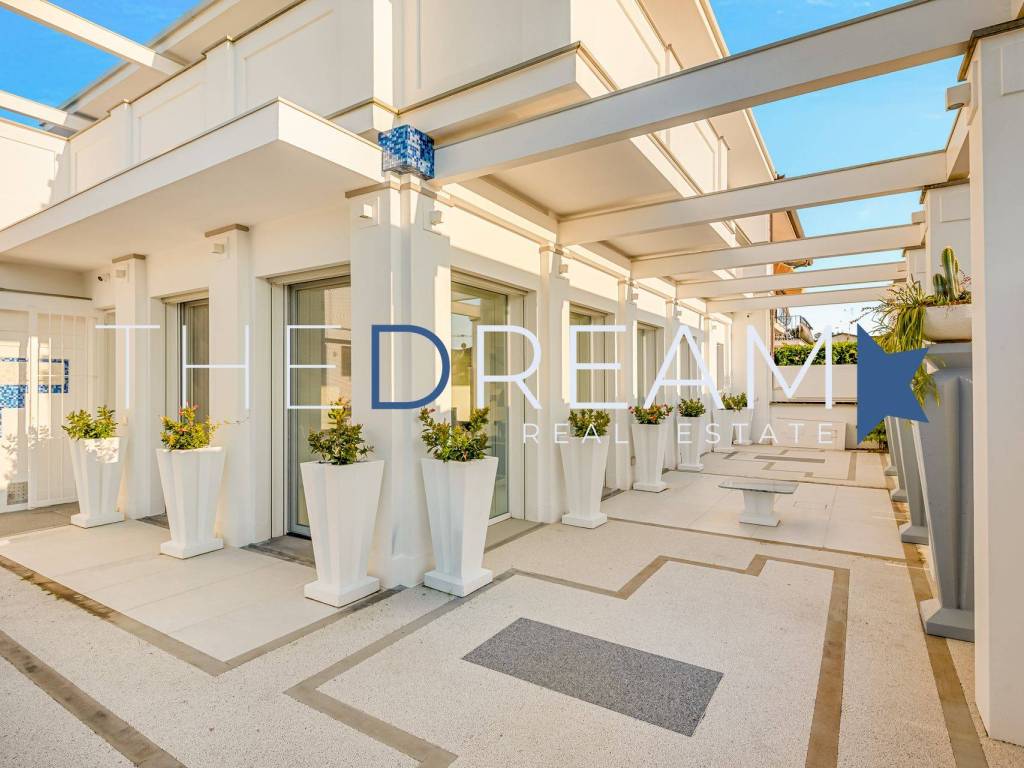 La pavimentazione in ceramica continua, uniforme in tutti gli ambienti, dona continuità e modernità agli spazi interni, mentre i bagni si distinguono per i rivestimenti in marmo pregiato, che esaltano il lusso e la raffinatezza della villa. Le porte interne, realizzate in legno laccato bianco lucido, aggiungono luminosità e un tocco contemporaneo.