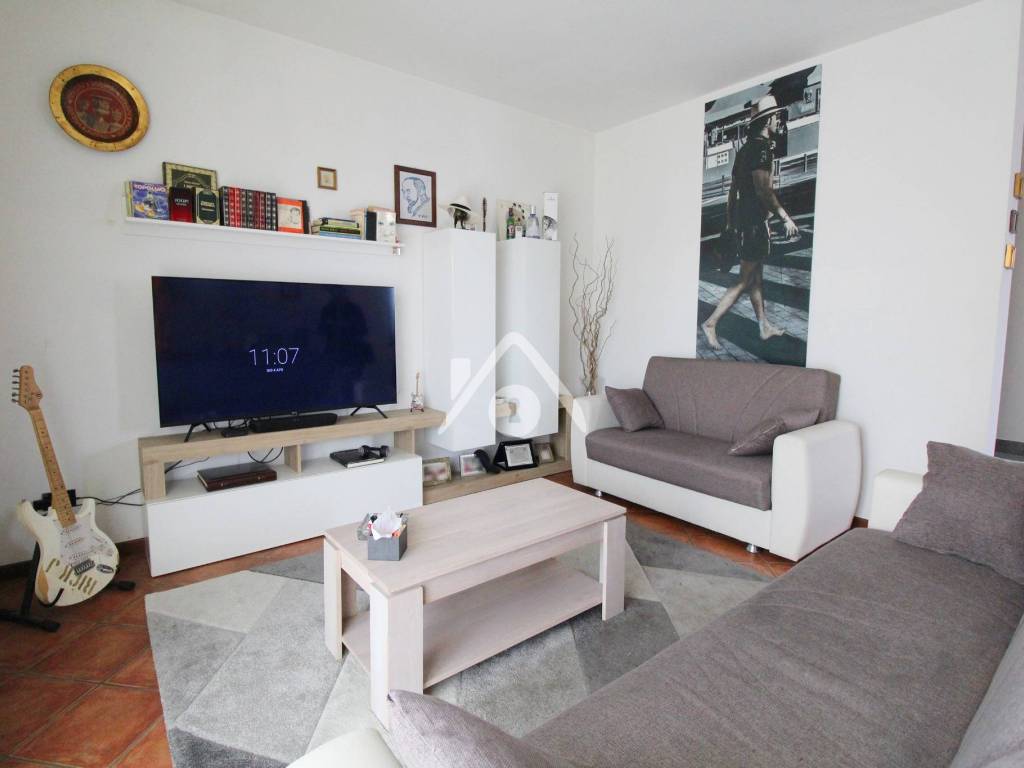 L'ingresso si apre su un soggiorno luminoso e arioso, connesso alla cucina tramite un breve disimpegno.