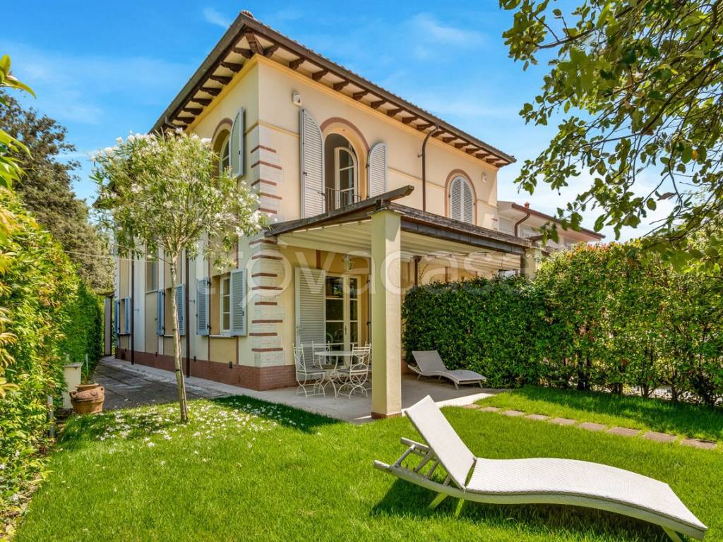 Villa a 100 mt dal mare in zona Vittoria Apuana a Forte dei Marmi. Villa è in posizione arretrata rispetto al filo stradale, condizione che garantisce silenziosità e privacy. La proprietà si trova a soli 100 mt dal mare e a circa 800 mt dal centro cittadino di Forte dei Marmi. Lotto esclusivo di circa 210 mq, l’accessibilità avviene mediante ingresso carrabile/pedonale con possibilità di parcheggiare 1 auto all’interno. La proprietà ha due pompeiane una predisposta per il living/pranzo all’esterno e l’altra adiacente alla cucina ideale anche per il pranzo all’aperto nelle giornate di caldo estivo. La proprietà è dotata di un piccolo ma ben curato giardino che impreziosisce questo immobile da sogno. Villa è una villa bifamiliare di circa 135 mq internamente cosi suddivisa: Piano Terra: Pompeiana all’ingresso, soggiorno open-space con zona pranzo, cucina abitabile con accesso diretto alla pompeiana dedicata, antibagno e bagno con doccia, ripostiglio, zona lavanderia all’esterno, comoda doccia esterna e spazio per parcheggiare le biciclette. Piano Primo: Al piano primo si accede da scala in travertino con grande apertura che “innonda” di luce tutto il vano scala, disimpegno, due camere matrimoniali con bagno en-suite e grandi aperture sulle zone verdi circostanti.