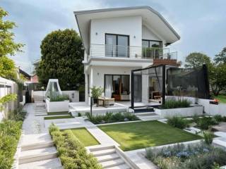 Porzione di bifamiliare recentemente ristrutturata in vendita a Forte dei Marmi Vittoria Apuana a 200 metri dal mare in bellissima zona residenziale. L'immobile si sviluppa su due livelli fuori terra ed è così composto: ingresso in soggiorno-pranzo con veranda ideale per pranzi e cene all'aperto, cucinotto, bagno di servizio e camera matrimoniale a piano terra. Piano primo: due ampie camere matrimoniali con balcone, camera singola e bagno finestrato con doccia. Ampio giardino libero su tre lati con posti auto interni.