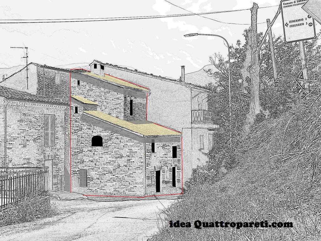 Nel Comune di Sarnano, in Contrada Romani, Quattropareti propone in vendita una casa affiancata disposta su tre piani per complessivi mq.108 (convenzionali) .