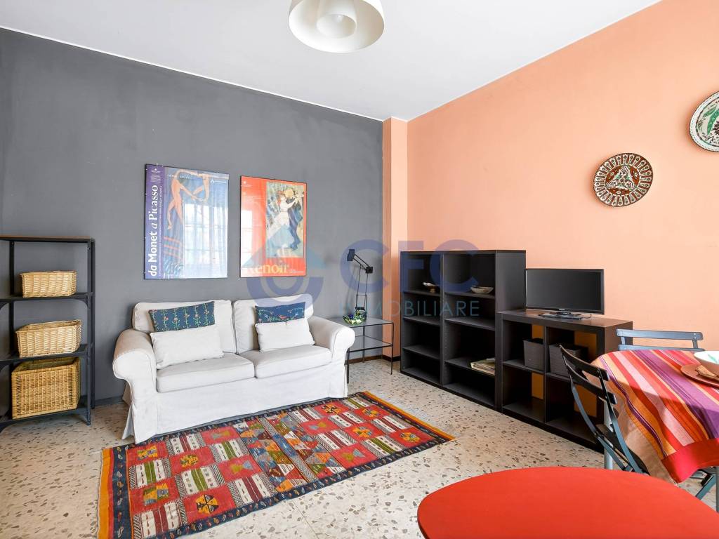 L'appartamento è così disposto: ingresso su disimpegno, ampio soggiorno con accesso al balcone, cucinotto con piano a induzione, comoda camera matrimoniale, bagno finestrato con vasca.