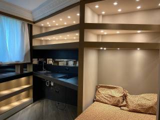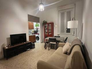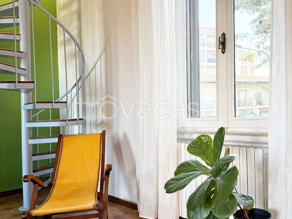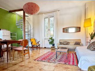 Proprio in uno dei palazzi d’epoca del quartiere si trova la casa di ringhiera oggetto della presentazione, l’ingresso attraverso il cancello di ferro che ricama decori a volute apre su un cortile con del verde, posti auto e box. La casa si trova al primo piano; non appena si entra ci si sente accolti da un’atmosfera calda e familiare, la zona giorno con la cucina a vista, i divani, il tavolo da pranzo, è particolarmente luminosa grazie alla doppia esposizione sulla balconata di ingresso e, dalla parte opposta, sul verde. La scala elicoidale ci porta al livello superiore dove attraverso un disimpegno lo spazio si articola un due camere da letto matrimoniali e un bagno finestrato con box doccia. Una delle due camere può godere di un accesso indipendente.