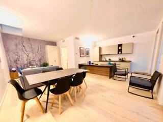 L'immobile risulta essere molto luminoso considerato il piano e la doppia esposizione interna/esterna. Internamente è rifinito con pavimentazione in gres in tutta la casa, porte interne in legno, alcune scorrevoli e con dettagli in vetro, infissi in alluminio doppio vetro, tapparelle manuali in pwc, riscaldamento, acqua calda e acqua fredda centralizzati con contatori a consumo, inclusi nelle spese condominiali ordinarie, oltre a aria condizionata con possibilità riscaldamento e raffrescamento in ogni ambiente della casa. L'immobile oltre ad avere un ampio balcone con vista interna e riservata possiede una terrazza vivibile per pranzi, cene e aperitivi. Il condominio non ha in programma spese straordinarie, è dotato di servizio di portineria giornaliero con i seguenti orari: