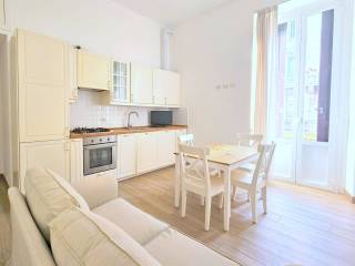 Disponibile da dicembre 2025, questo bilocale ristrutturato e finemente arredato si trova in una posizione tranquilla e ben servita, tra le fermate della metropolitana De Angeli e Gambara. L’appartamento, situato a un piano alto, è molto luminoso e silenzioso, con affaccio sul giardino condominiale interno. È composto da una zona living con comodo divano letto matrimoniale e blocco cucina completo di lavastoviglie, camera da letto e bagno con ampio box doccia e lavatrice. Dotazioni: aria condizionata, cassaforte, doppi infissi, tapparelle elettriche e pavimenti in parquet. Disponibile sia per contratti a lungo termine sia per contratti transitori di 18 mesi. Canone mensile € 1.300,00 oltre spese condominiali di € 170,00. Per informazioni: +39 348 5725875 (anche whatsapp) – info@evapieriapartments.com.