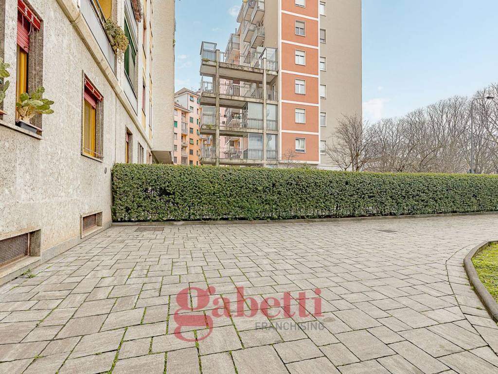 In stabile di inizio anni '60 con portineria e giardino condominiale, proponiamo al piano rialzato di otto, appartamento così composto: ingresso, cucina abitabile, ampia zona giorno con divano letto matrimoniale, bagno finestrato e cantina al piano S1.