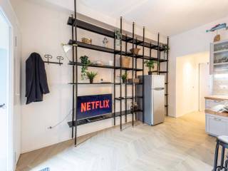 Un grande antibagno con armadio nasconde il letto matrimoniale dal soggiorno. Grande bagno finestrato con doccia e lavatrice. Aria condizionata in entrambi gli ambienti, doppi infissi, porta blindata.